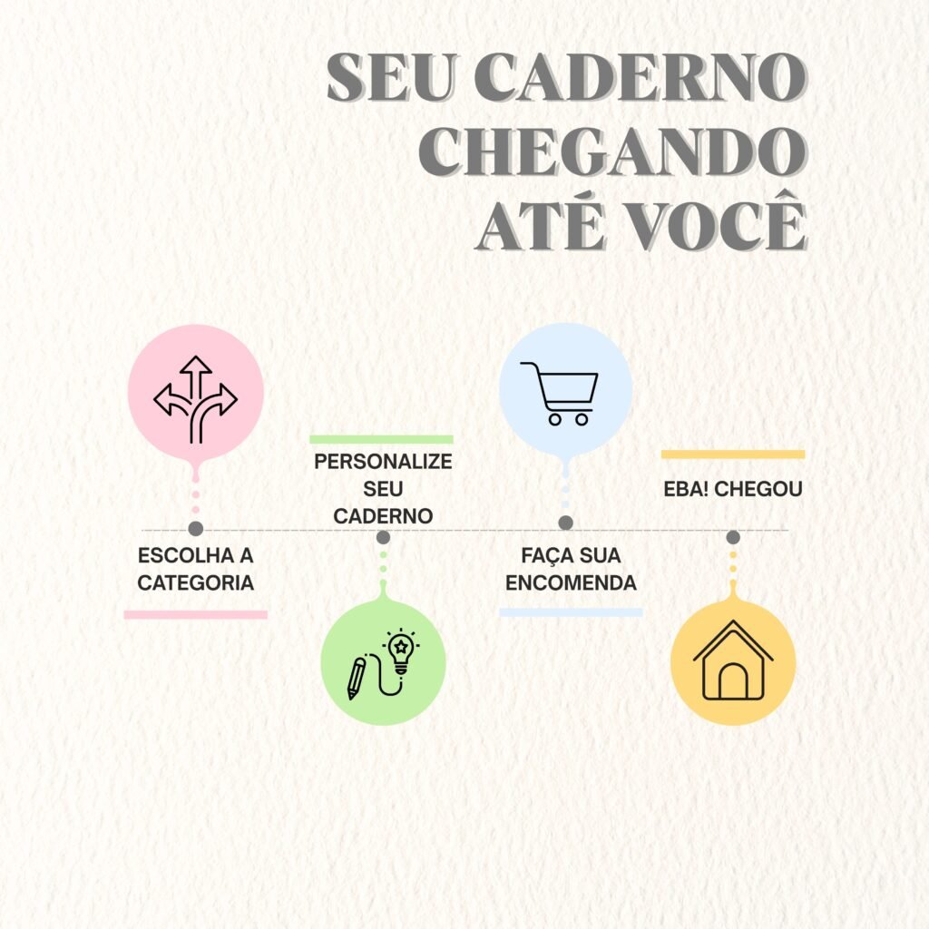 Nossa personalização guiada traz a liberdade para o consumidor de montar seu próprio caderno, de acordo com seus gostos e preferências de estética e layout interno ou externo.